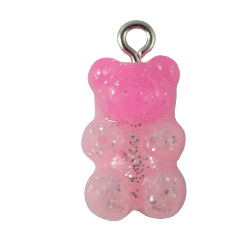 Zawieszka miś  różowa matowa brokatowa ,  wykonana z żywicy o wymiarach 18x11x7 mm , posiada zamontowaną wkrętkę.