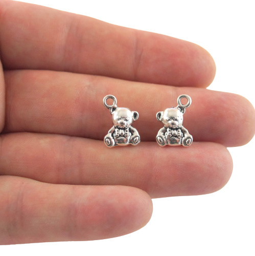 Zawieszka dwustronna miś w kolorze srebrnym o wymiarach: 14x10x5 mm. Cena za 1 szt.