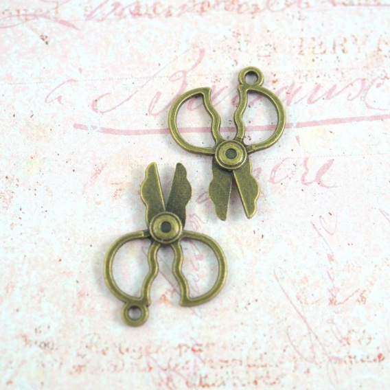 Zawieszka nożyczki krawieckie dwustronne w kolorze starego złota 25 mmX19 mm .