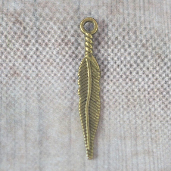 Zawieszka pióro w kolorze stare złoto ,o wymiarach 28X4 mm