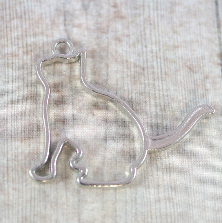 Ramka duży kot w kolorze srebrnym o wymiarach 42x38x3,5 mm
