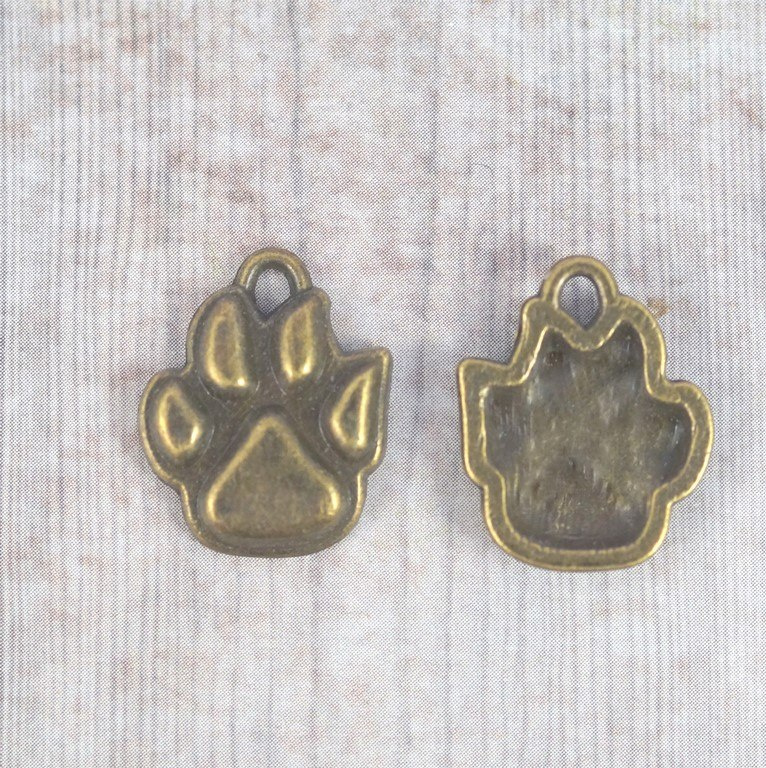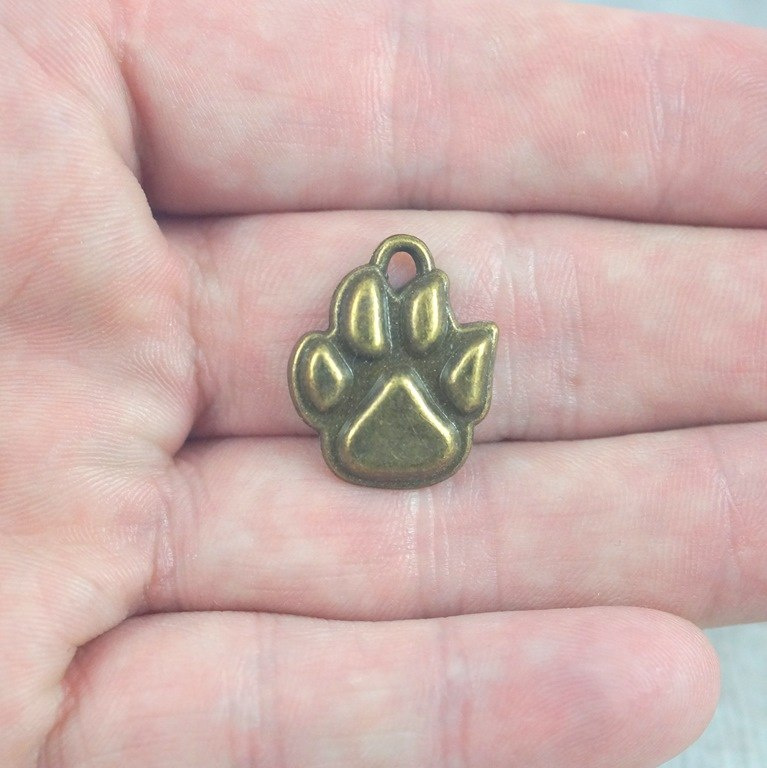 Zawieszka w kolorze starego złota , ślad łapy. Wymiary 20x16x3mm , cena za 1 szt.