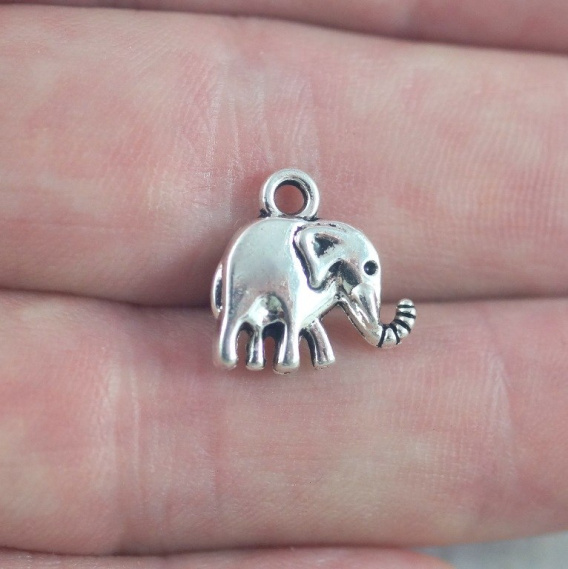 Zawieszka dwustronna słonik z trąbą do góry (szczęśliwy słonik) w kolorze srebrnym o wymiarach 13x13x3 mm