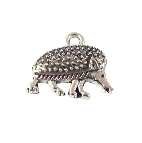 Zawieszka jednostronna w kolorze srebrnym jeż o wymiarach 18x14x3 mm.