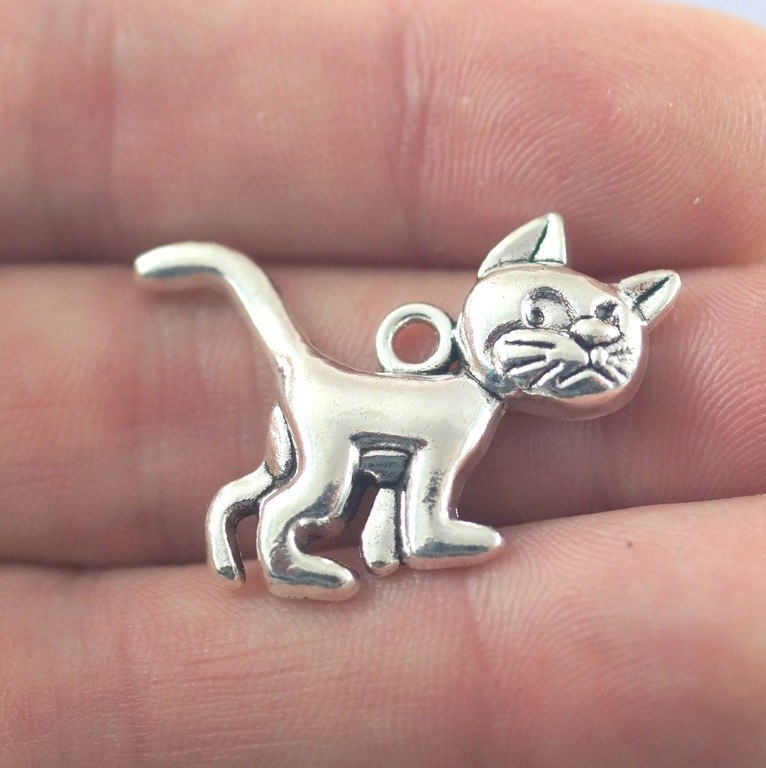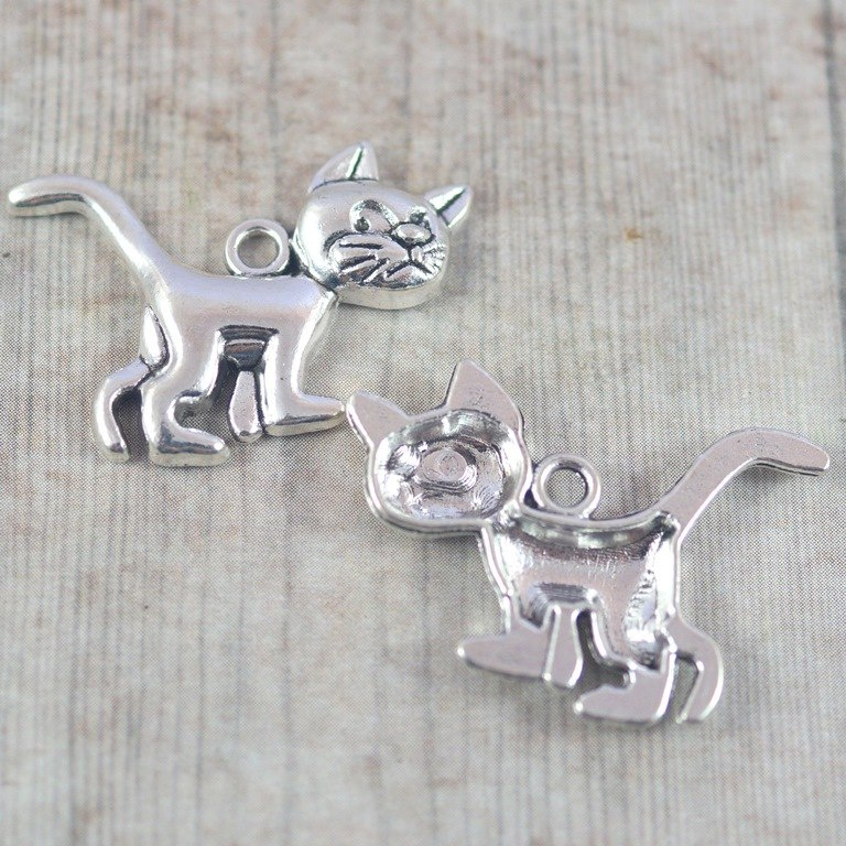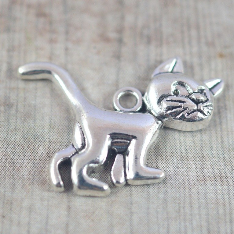 Zawieszka kot Klakier (smerfy) w kolorze srebrnym o wymiarach 30x22 mm