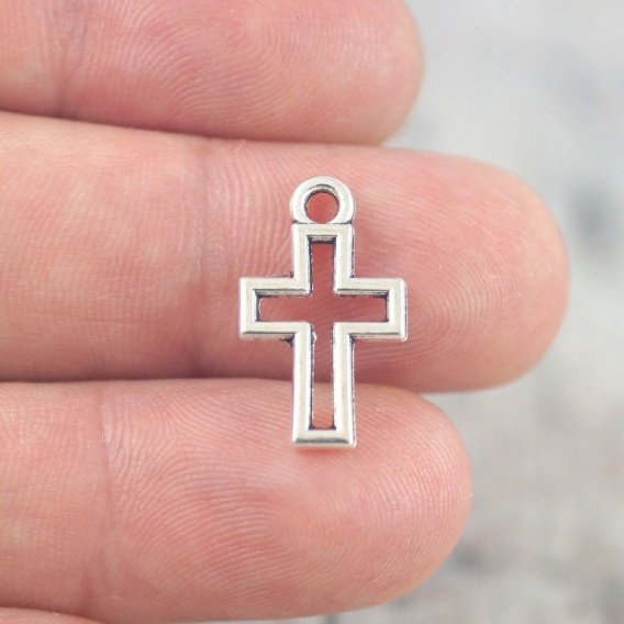 Zawieszka w kolorze srebrnym o wymiarach 17x11x1,3 mm