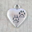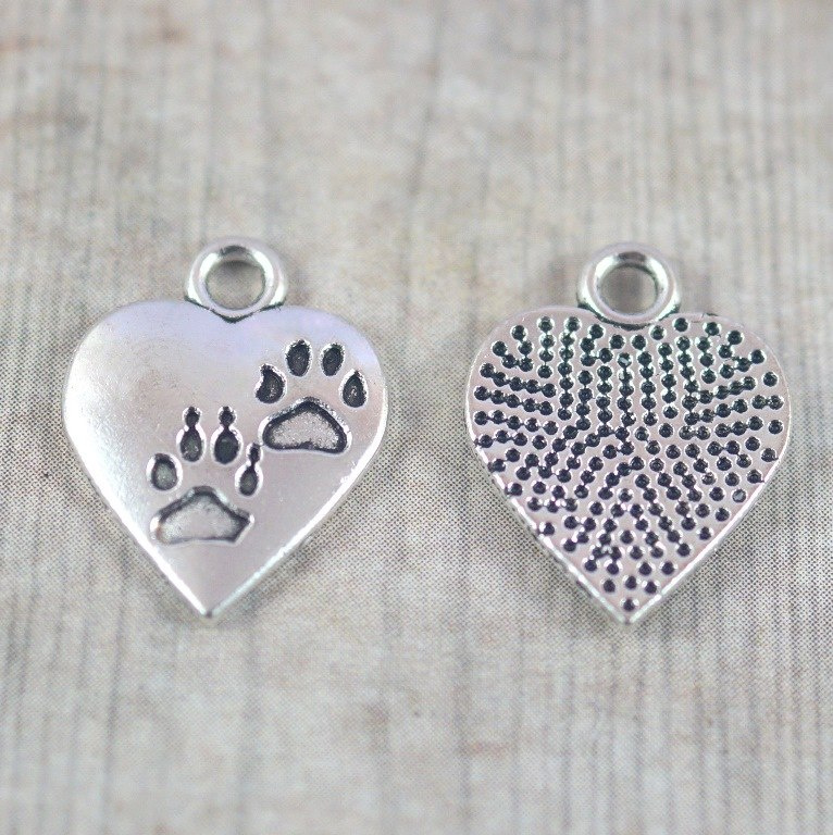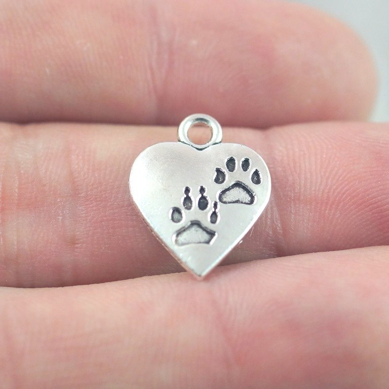 Zawieszka serce i dwa ślady łapek w kolorze srebrnym o wymiarach 17x14 mm