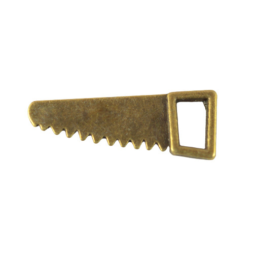 Zawieszka piła w kolorze starego złota o wymiarach 23x9x1,9 mm.