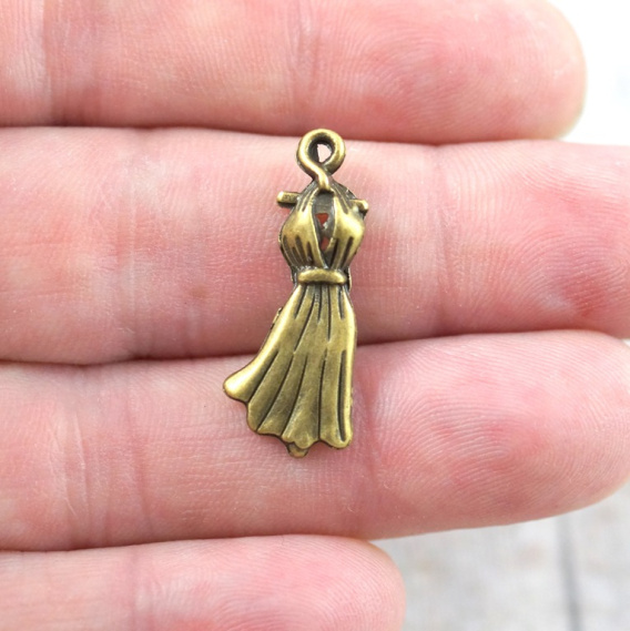 Zawieszka sukienka balowa w kolorze starego złota o wymiarach 26x10x3mm