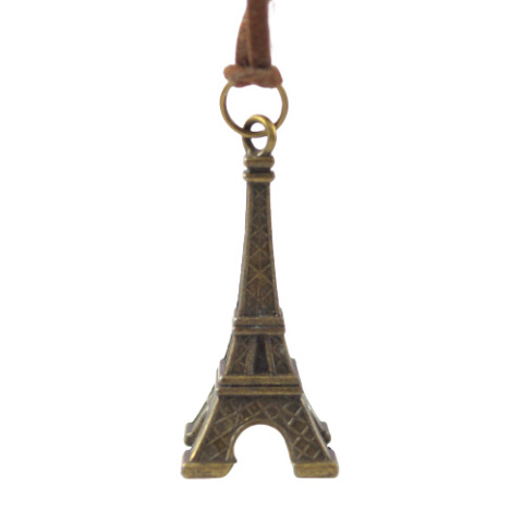Zawieszka wieża Eiffla w kolorze starego złota z rzemieniem o długości 90 cm.
